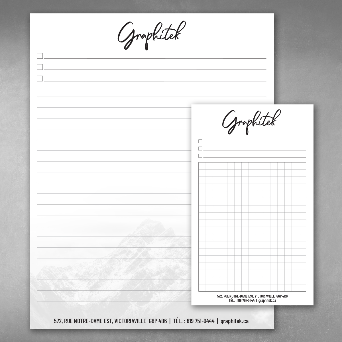 – Format 4.25 x 5.5″, 5.5 x 8.5″, 8.5″ x 11″, sur mesure