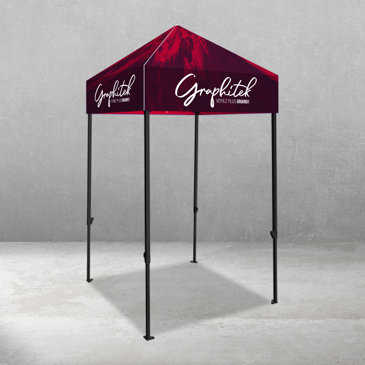 Il est idéale pour tous les événements extérieurs. Ce modèle offre une structure très résistante dû à la composition de l’aluminium avec des pattes hexagonales. De plus, la toile de la tente est 100% personnalisable selon votre image de marque ou du message que vous désirez passer.
