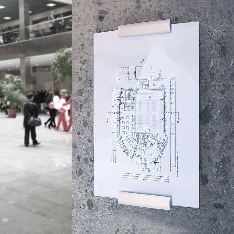 Il existe des fixations murales ainsi que des fixations à des bureaux. De plus, amples informations, veuillez communiquer avec nous.