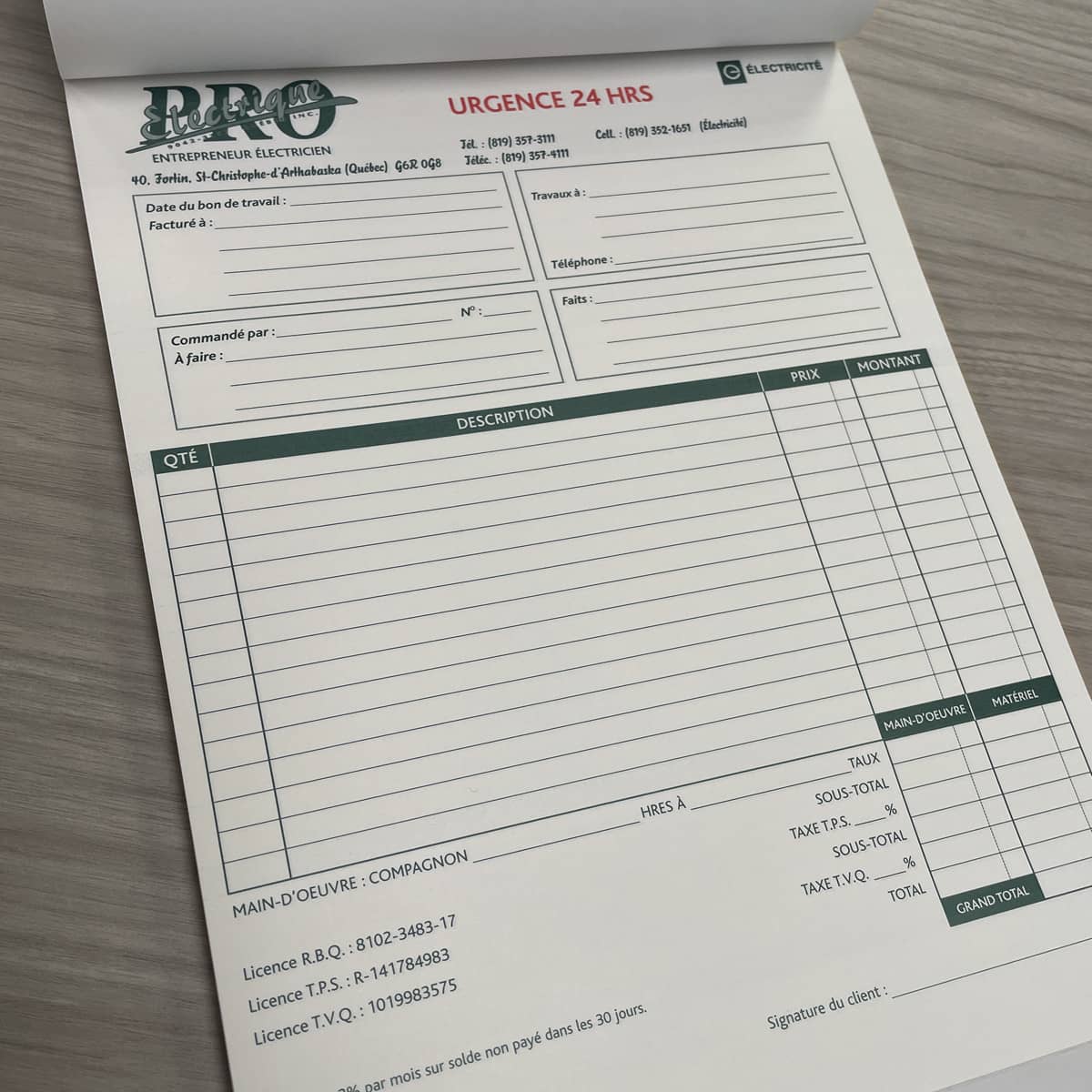 Idéal pour le travail sur la route. Ayez en tout temps vos formules de soumission, commande ou facture.