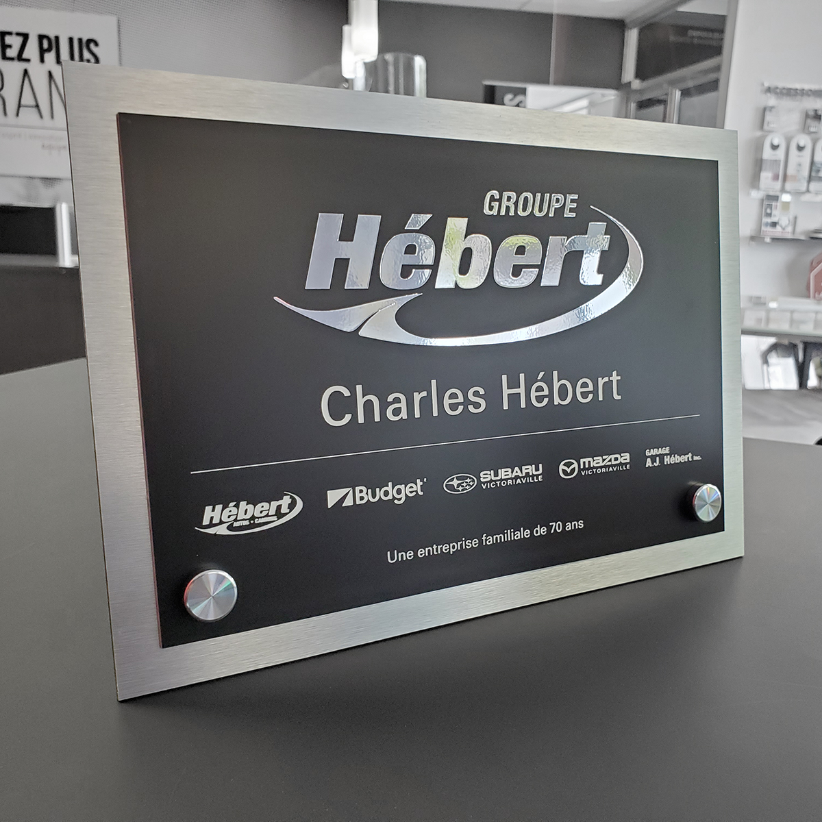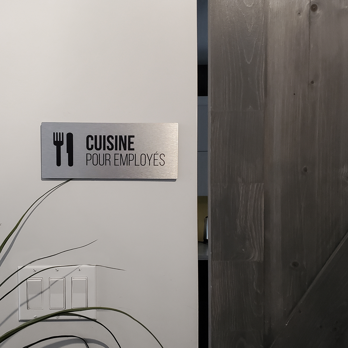 Nous fabriquons des plaquettes d’identification des locaux, que ce soit pour la numérotation des classes dans une école ou pour nommer des salles de réunions dans une entreprise. Si votre besoin nécessite des changements occasionnels, important de le mentionner. On a des systèmes pour ça. Les plaquettes peuvent être plus conformiste ou plus déco… à vous de demander !